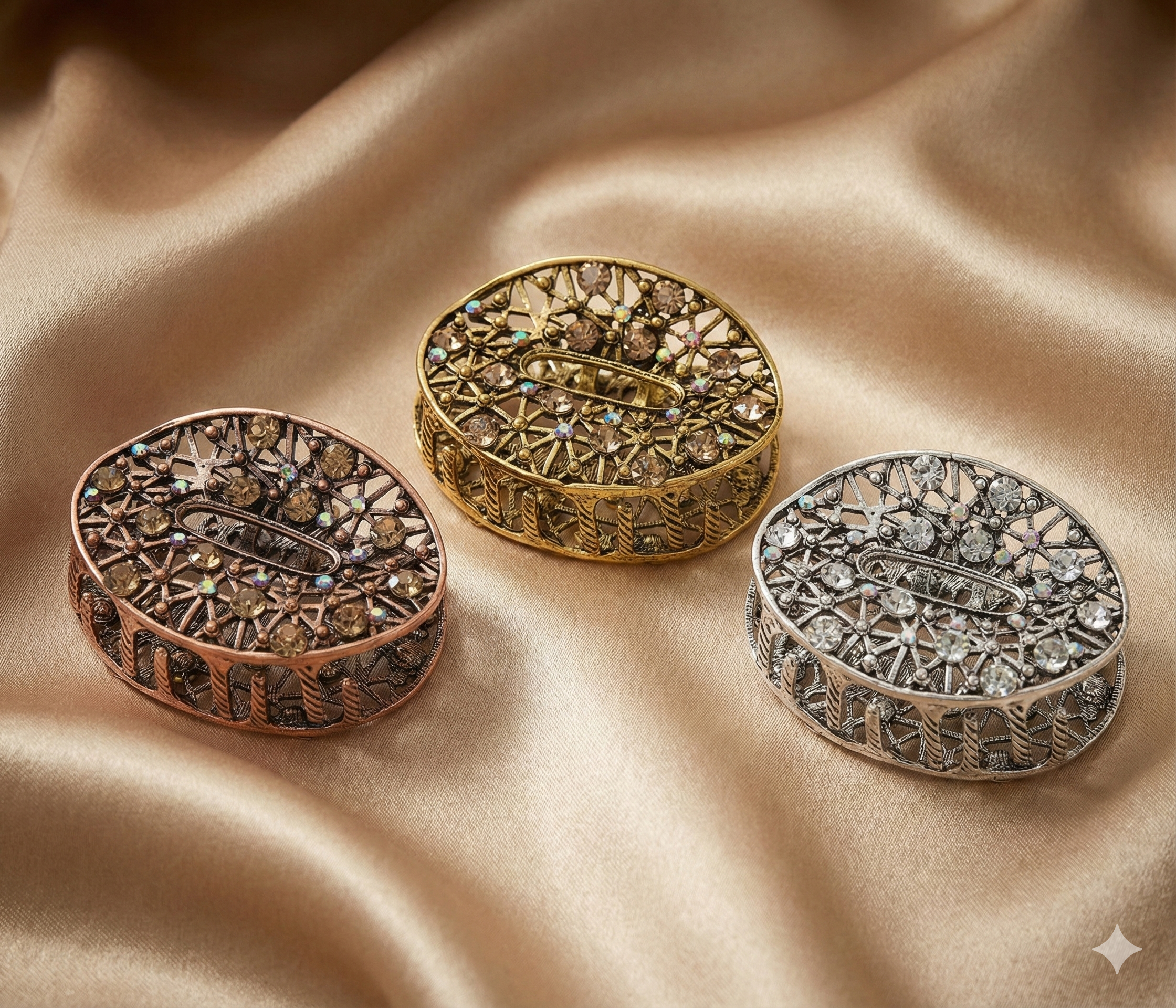 Radhu & Kabby Metal Oval Stone Hair Claw Clips | Gold, Silver & Rose Gold | Pack of 3