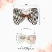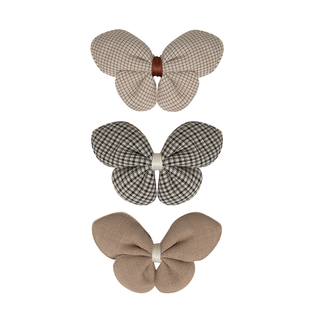 Radhu & Kabby Fabric Butterfly Hair Clips for Girls & Women | Set of 3 Elegant Neutral Soft Checkered Bows