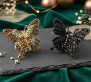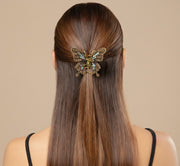 Radhu & Kabby Butterfly Metal Hair Claw Clip Set | Antique Gold & Black Stone-Styled Hair Accessories for Women/Girls