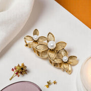Elegant Floral Pearl Hair Claw Clip - Vintage Metal Flower Hair Accessory