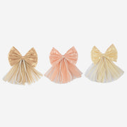 Net Hair Bow Clips with Pearl-Embellished Multi colour Set of 3