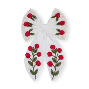 Floral Embroidered Hair Bow Clip Hair Accessories White 1 Pcs