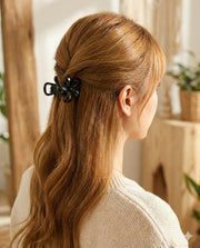Radhu & Kabby Crystal Floral Hair Claw Clip Set | Black, Silver & Gold Hair Accessories for Women/Girls