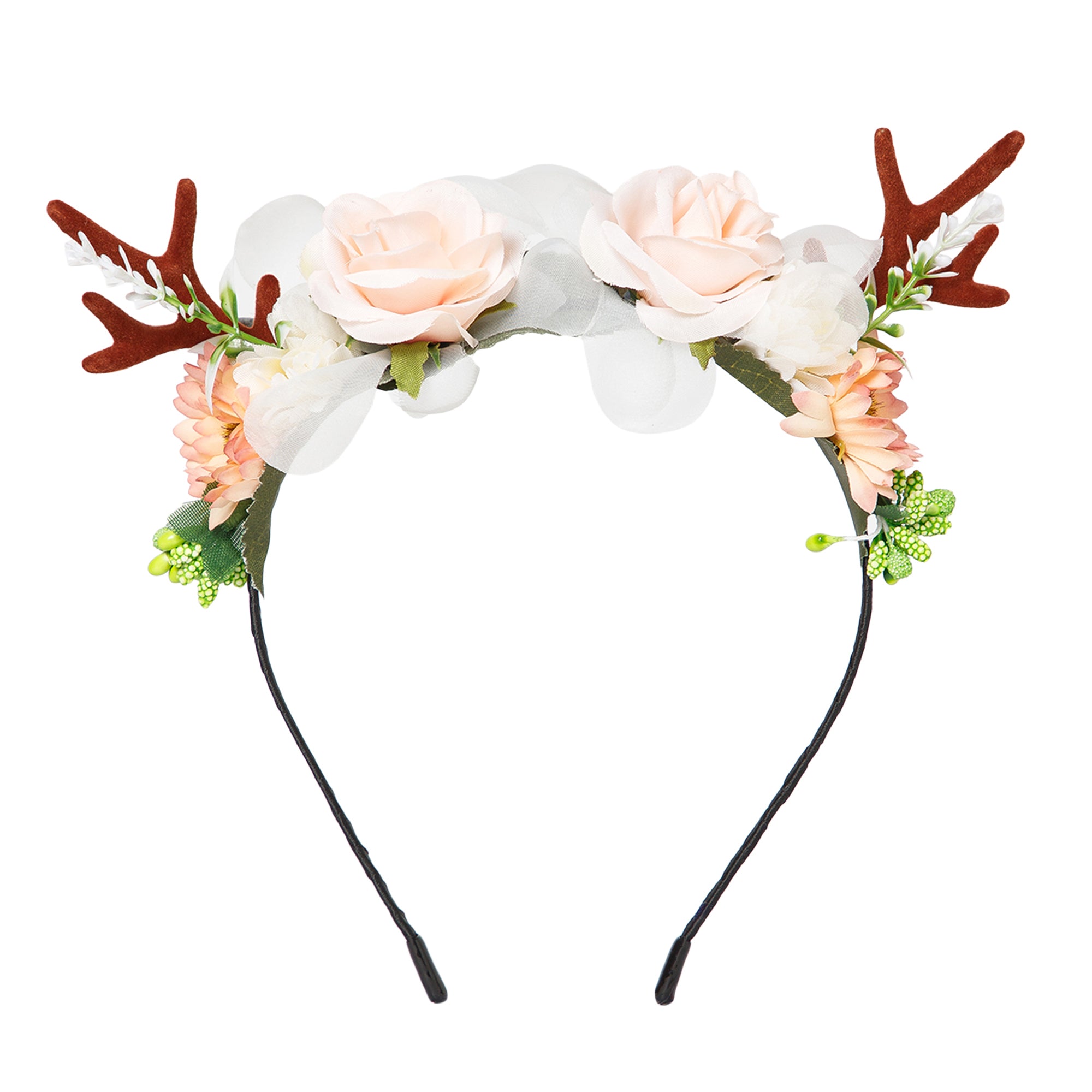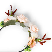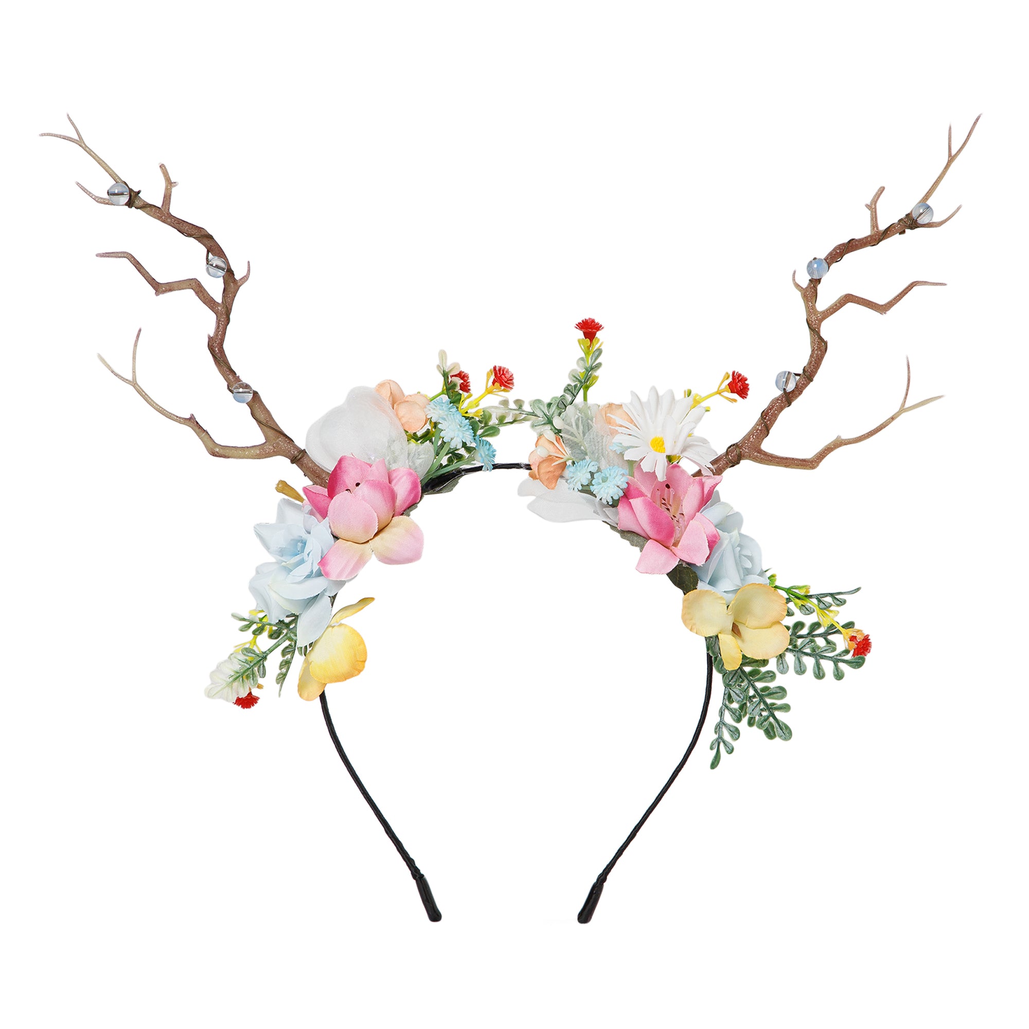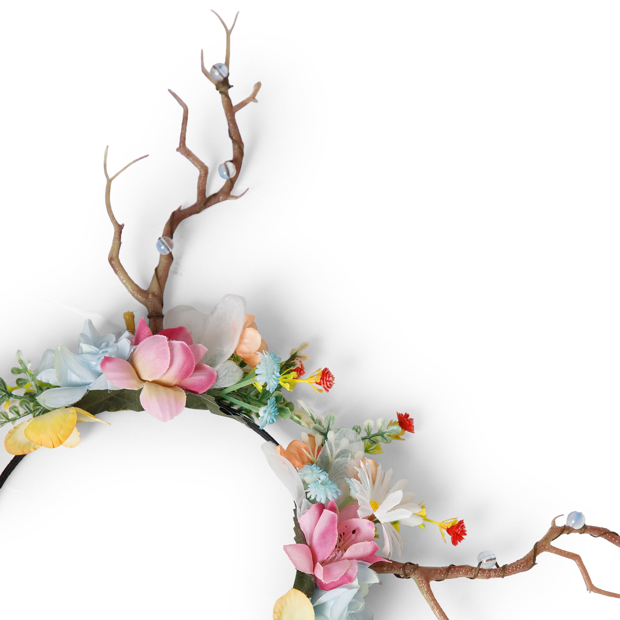 Radhu & Kabby Christmas Floral Antler Headband | Fantasy Deer Horn Hairband with Flowers & Leaves | Pack of 1 Soft, Lightweight Accessory