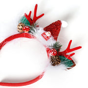 Christmas Red Reindeer Antler Hairband with Pom-Poms & Ornaments - Festive Accessory One Piece