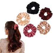 Satin Hair Scrunchies: Trendy Elastic Ties Set of 5