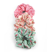 Satin Scrunchies - Pink, Peach & Green Pack of 3