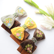 Floral Embroidered Hair Bow Clip Hair Accessories White 1 Pcs