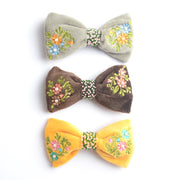 Radhu & Kabby Velvet Hair Bow Clips | Pack of 3 Yellow, Brown & Grey | Suitable for All Hair Types
