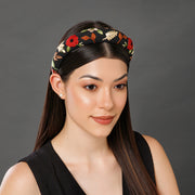 Radhu & Kabby Black Floral Embroidered Hairband | Handmade Headband for Women & Girls