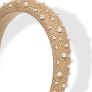 Radhu & Kabby Elegant Beige Jute Fabric Hairband Decorated with White Pearls | Stylish Hair Accessory for Girls & Women