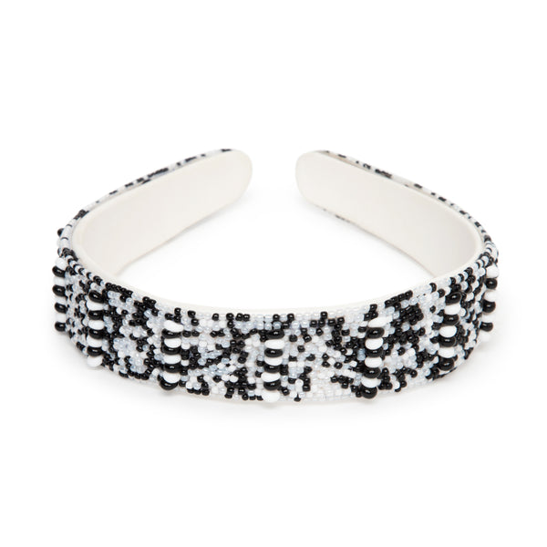 Handmade Black & White Beaded Hairband - Elegant & Durable