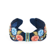 Floral Embroidered Navy Blue Headband with Beaded Pack of 1