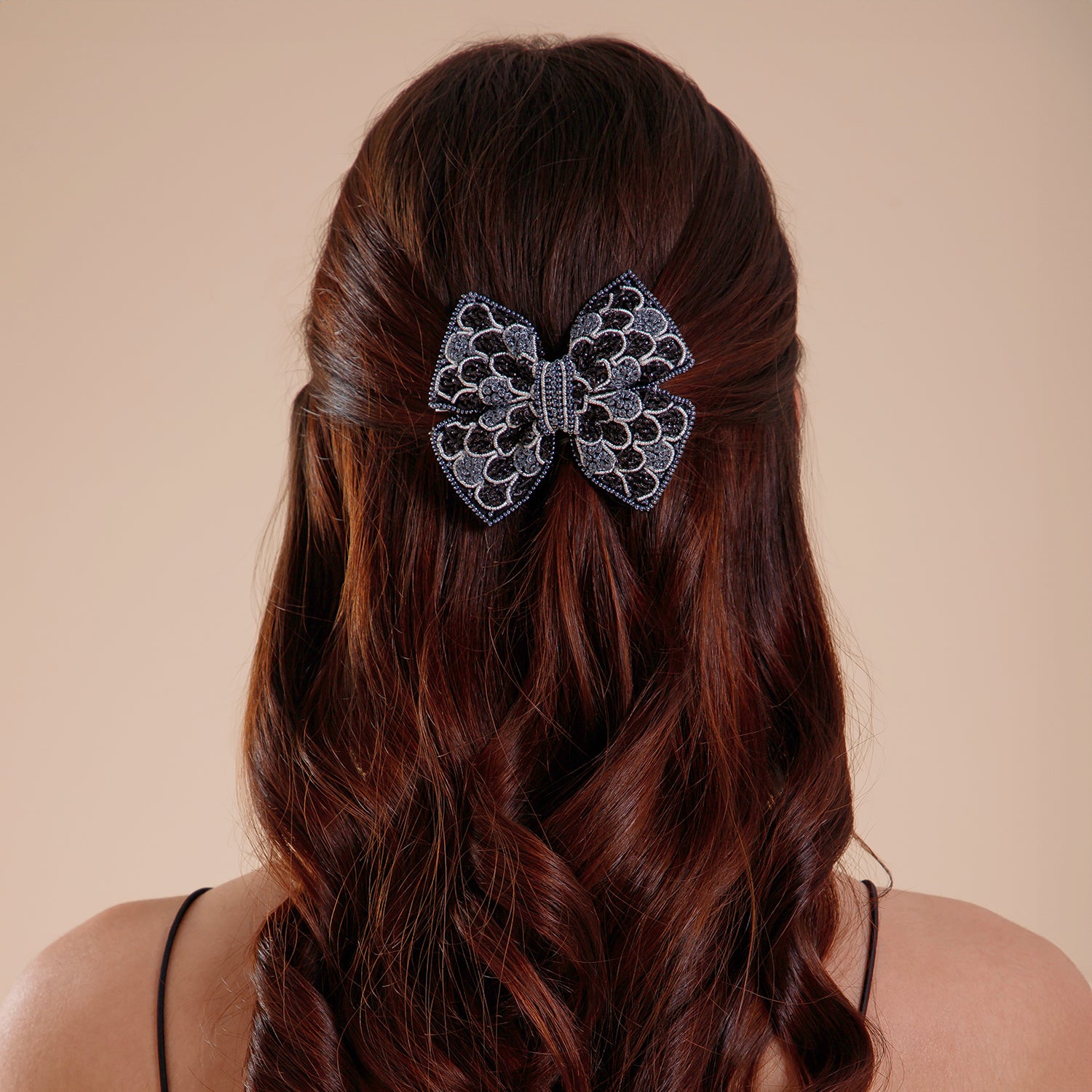 Handmade Silver Embellished Hair Bow for Girls & Women