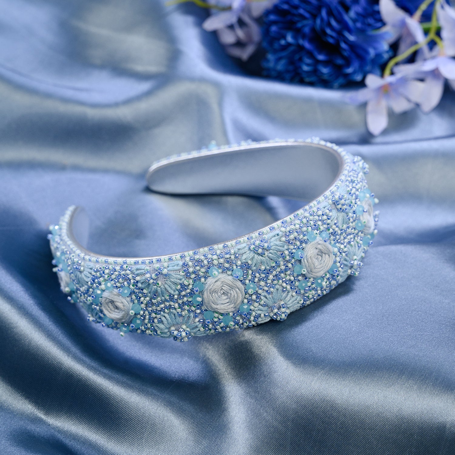 Hairband with Blue and Gold Seed Beads Embellishments for Women