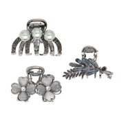 Elegant Silver Hair Clutcher Set for Women & Girls | Floral, Pearl & Leaf Design | Strong Grip & Stylish Metal Finish
