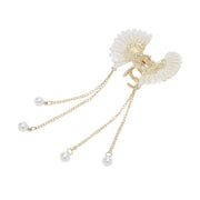 Elegant Butterfly Hair Clutcher with Pearl Chains and White Stones 1 Piece