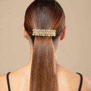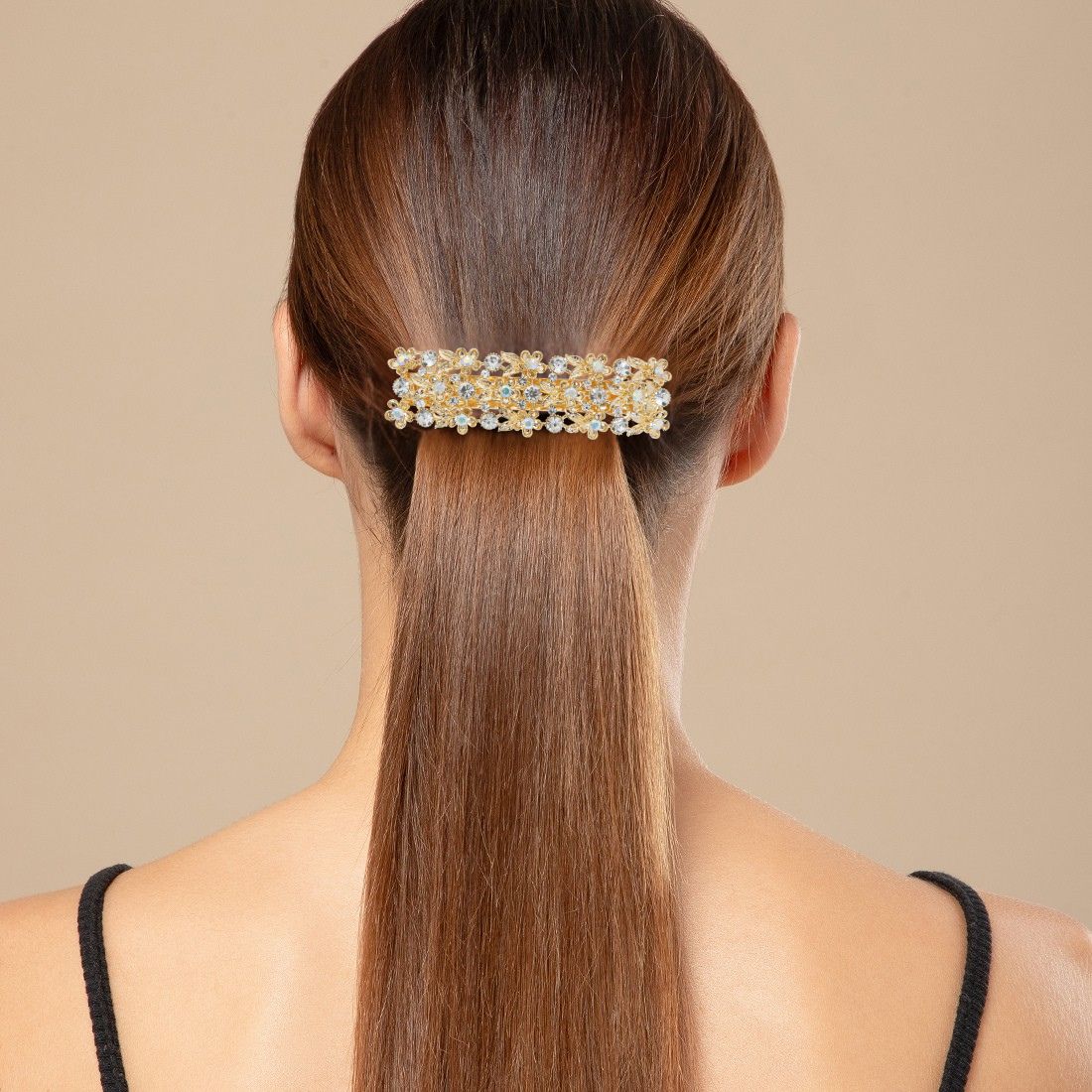 Golden Metal Barrette Hair Clip - Crystal Accents Hair Accessory for Women 1 Piece