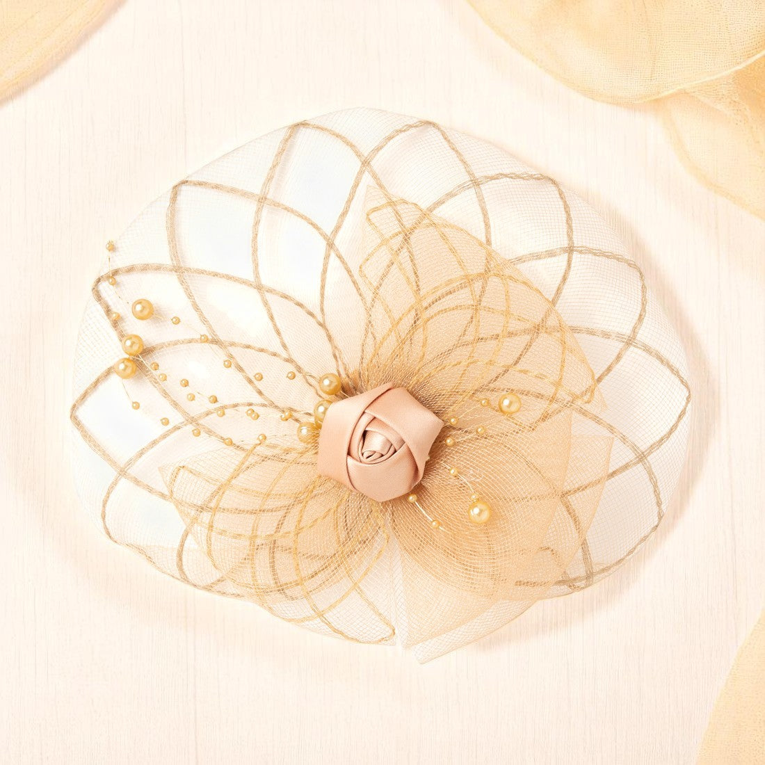 Radhu & Kabby Stylish Fascinator Hat for Girls/Women | Mesh & Pearl Detailing | For Special Events