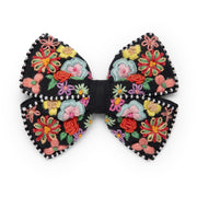Black Floral Hair Bow with Alligator Clip Hand-Embroidered Design 1 Pcs
