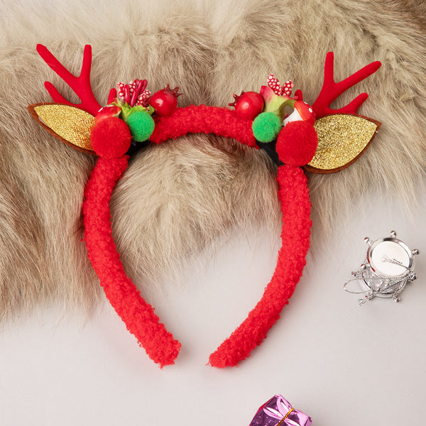 - Festive reindeer antlers with glittery gold ears.